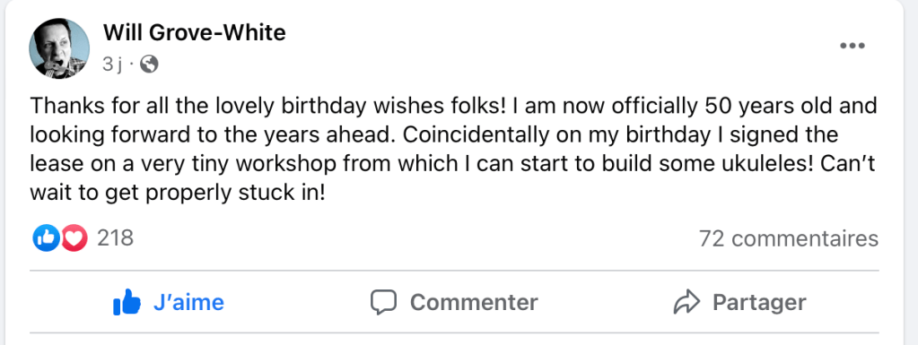 Et il y a quelques jours il a annoncé sur Facebook qu’il avait signé un bail pour un petit local commercial où il va fabriquer des instruments ! On a hâte de voir ses futures créations !